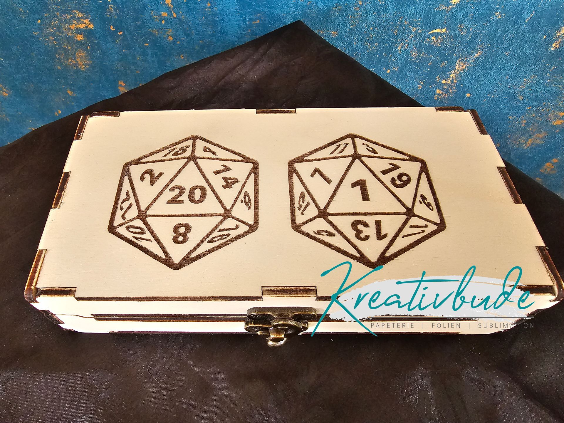 Habt auch ihr Interesse daran, eine tolle Würfel- oder Kartenbox euer eigen zu nennen, dann meldet euch einfach bei uns. Gemeinsam finden wir das perfekte Design für eure Box.